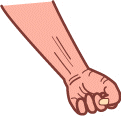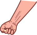 右ききの人は右手、左ききの人は左手に、握りこぶしをつくって、息を吐きながら握りしめてください。数回。再び持って、立ったり座ったりして楽になったか、また力の入り方の変化を確認してください。